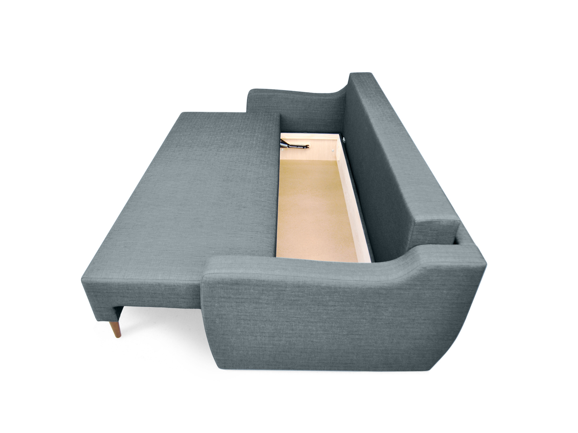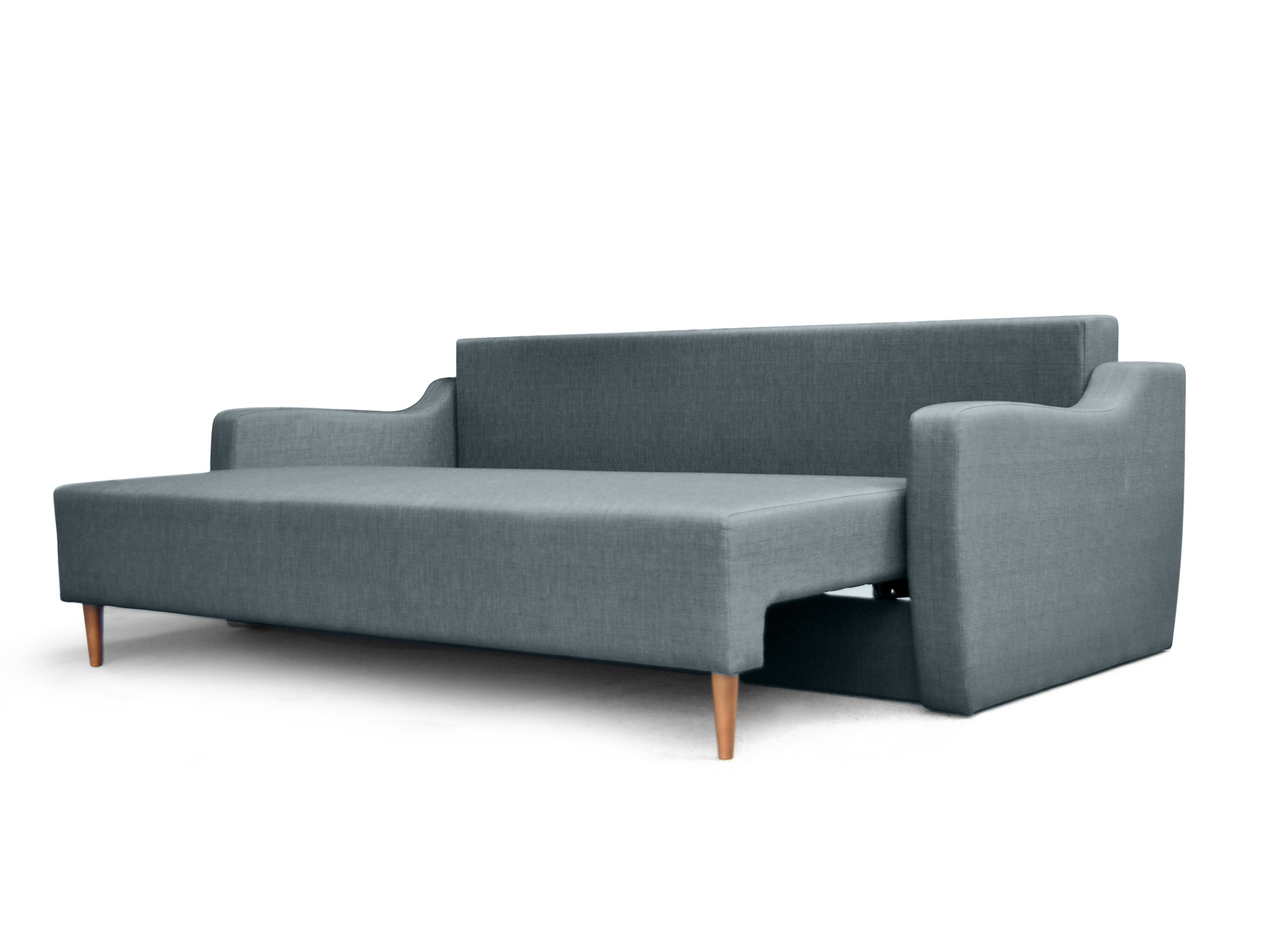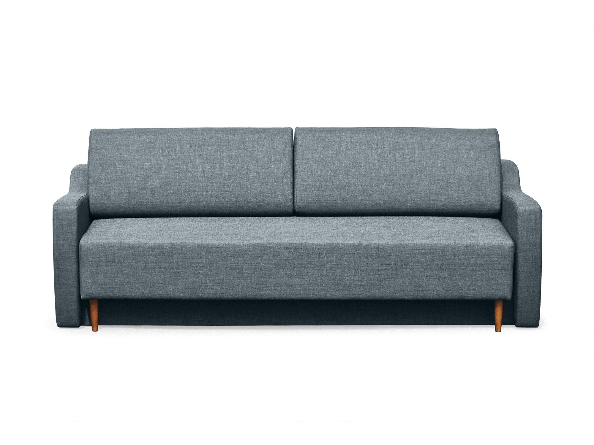 Copenhagen Mid-Century Sofa Bed in Denim provides a comfortable place to sleep, lounge and relax. Due to its minimalist but sophisticated look with a mid-century modern flair, it will perfectly complement any interior. With a large seating area, this sofa bed also includes a useful storage space below to store the blankets and pillows for night sleep. Upholstered with solid fabric, the durable frame and reliable mechanism guarantee a great numbers of opening and closing.