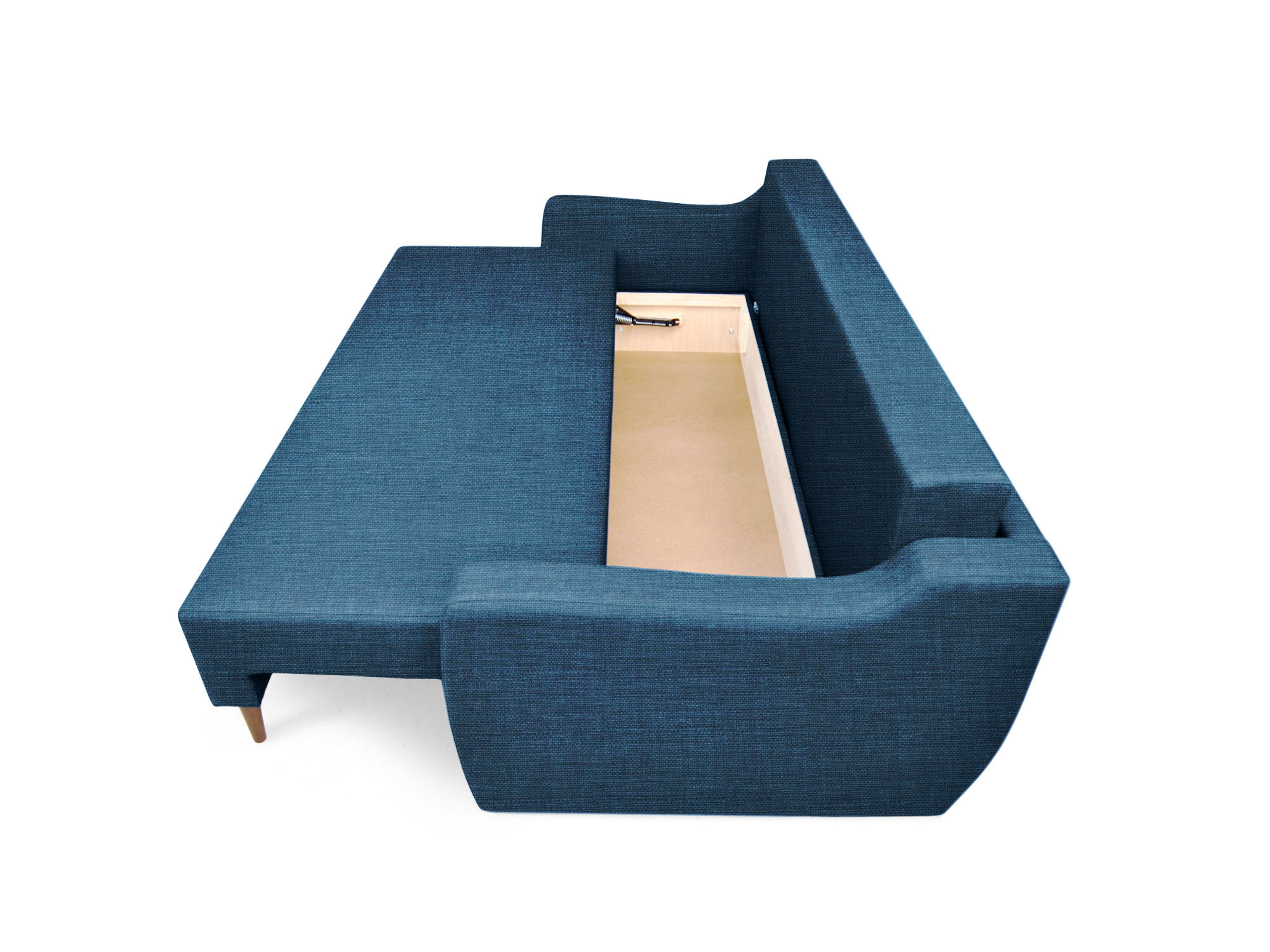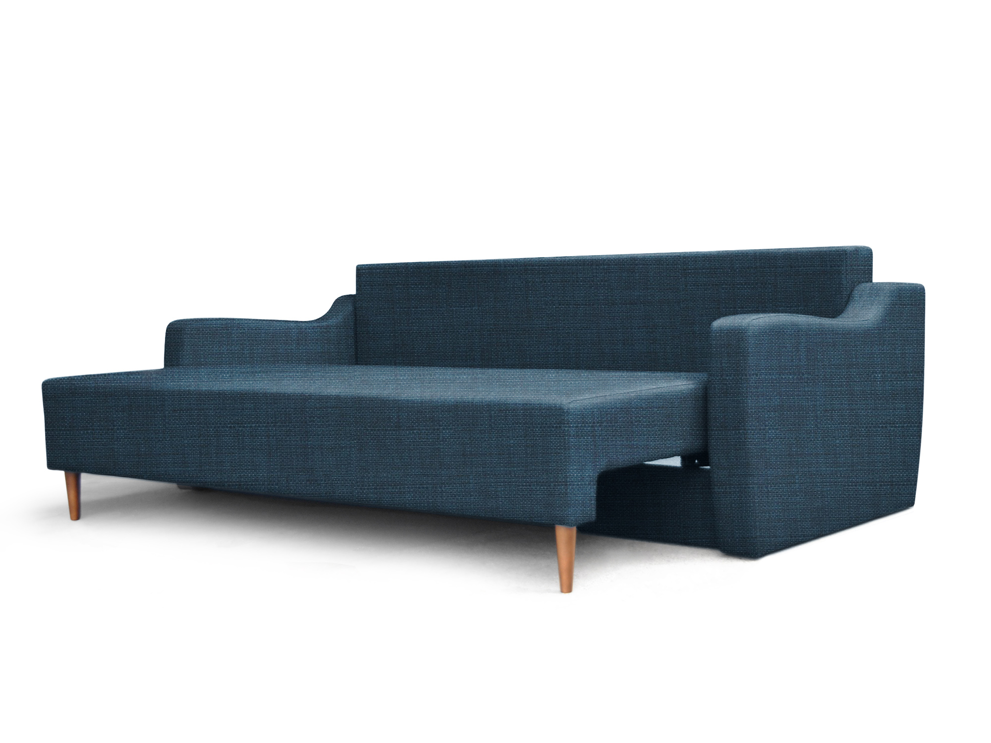 Copenhagen Sofa Bed in Indigo provides a comfortable place to sleep, lounge and relax. Due to its minimalist but sophisticated look with a mid-century modern flair, it will perfectly complement any interior. With a large seating area, this sofa bed also includes a useful storage space below to store the blankets and pillows for night sleep. Upholstered with solid fabric, the durable frame and reliable mechanism guarantee a great numbers of opening and closing.