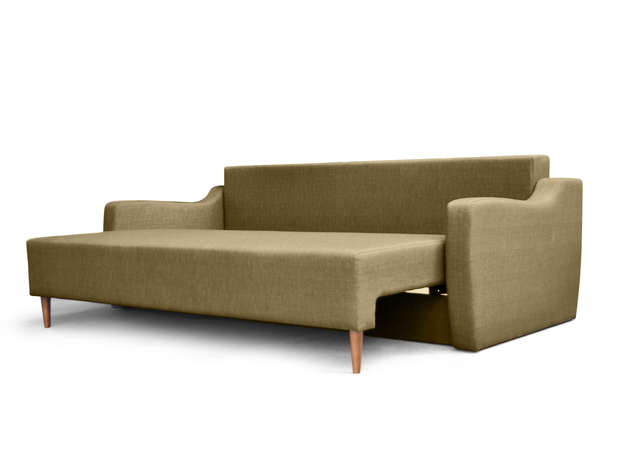 Copenhagen Mid-Century Sofa Bed in Oat provides a comfortable place to sleep, lounge and relax. Due to its minimalist but sophisticated look with a mid-century modern flair, it will perfectly complement any interior. With a large seating area, this sofa bed also includes a useful storage space below to store the blankets and pillows for night sleep. Upholstered with solid fabric, the durable frame and reliable mechanism guarantee a great numbers of opening and closing.