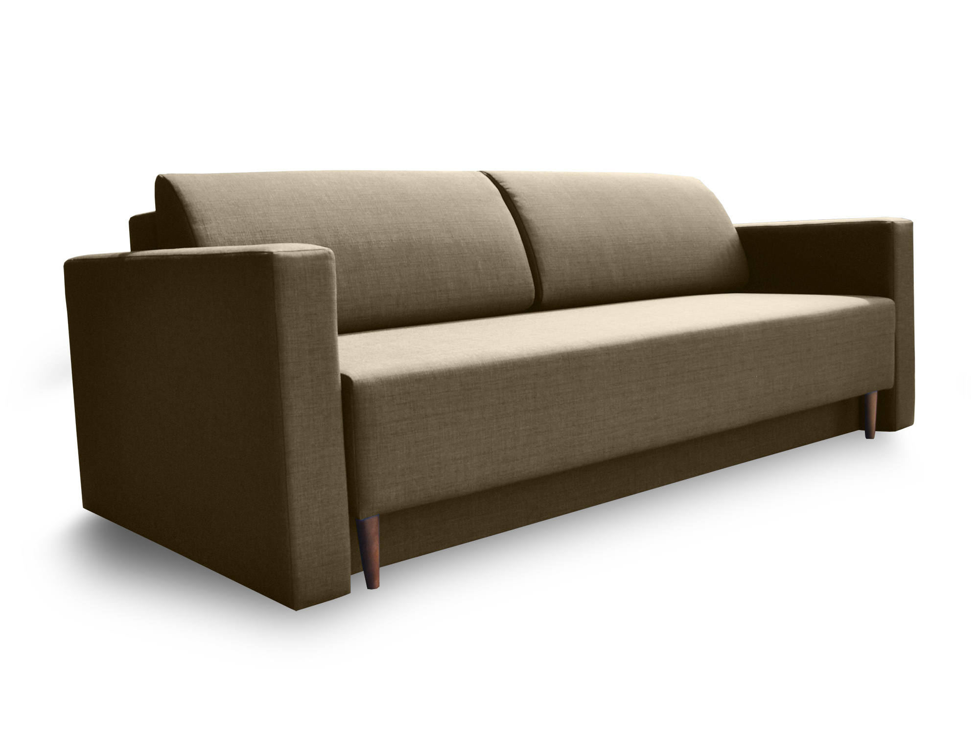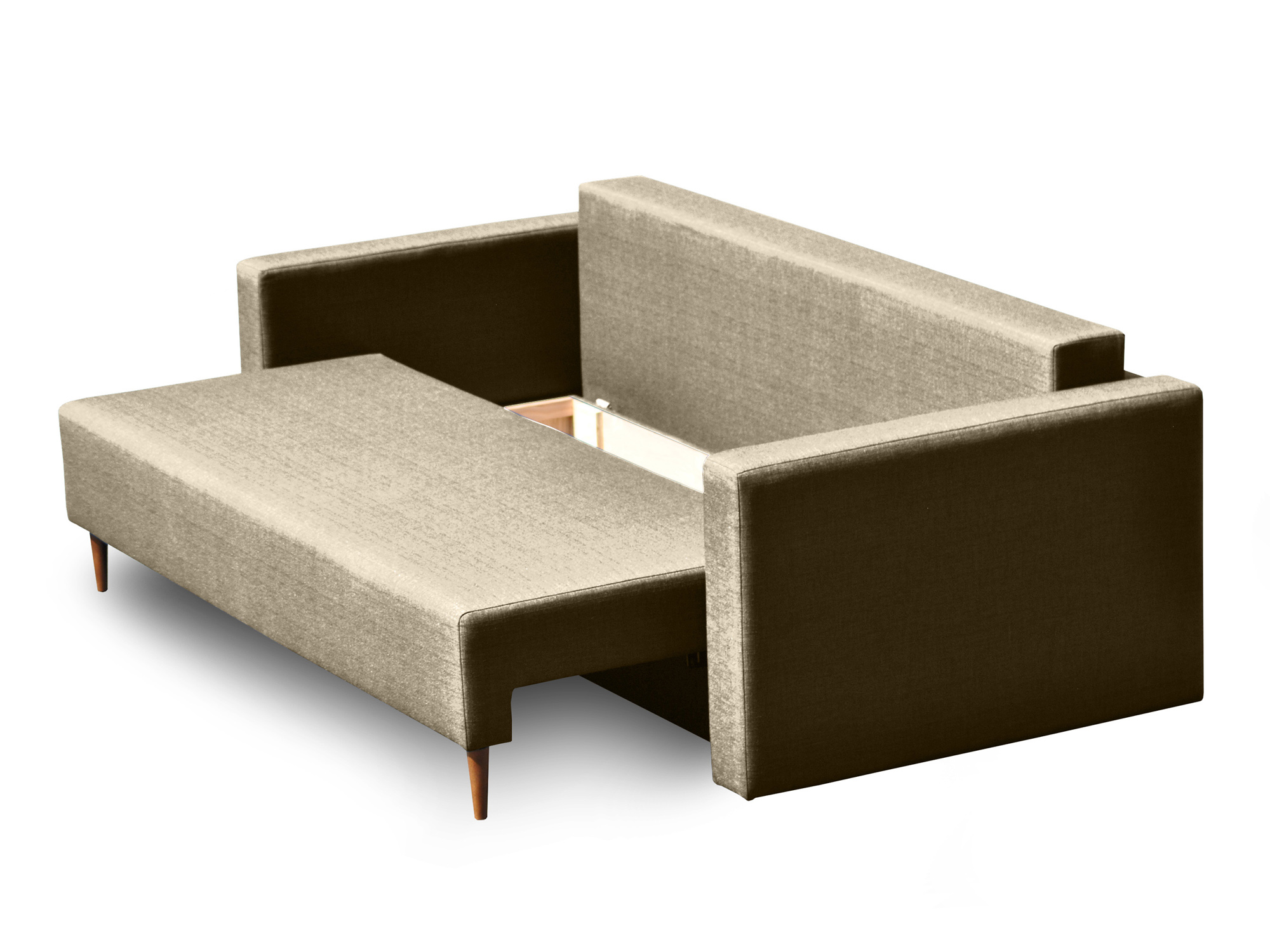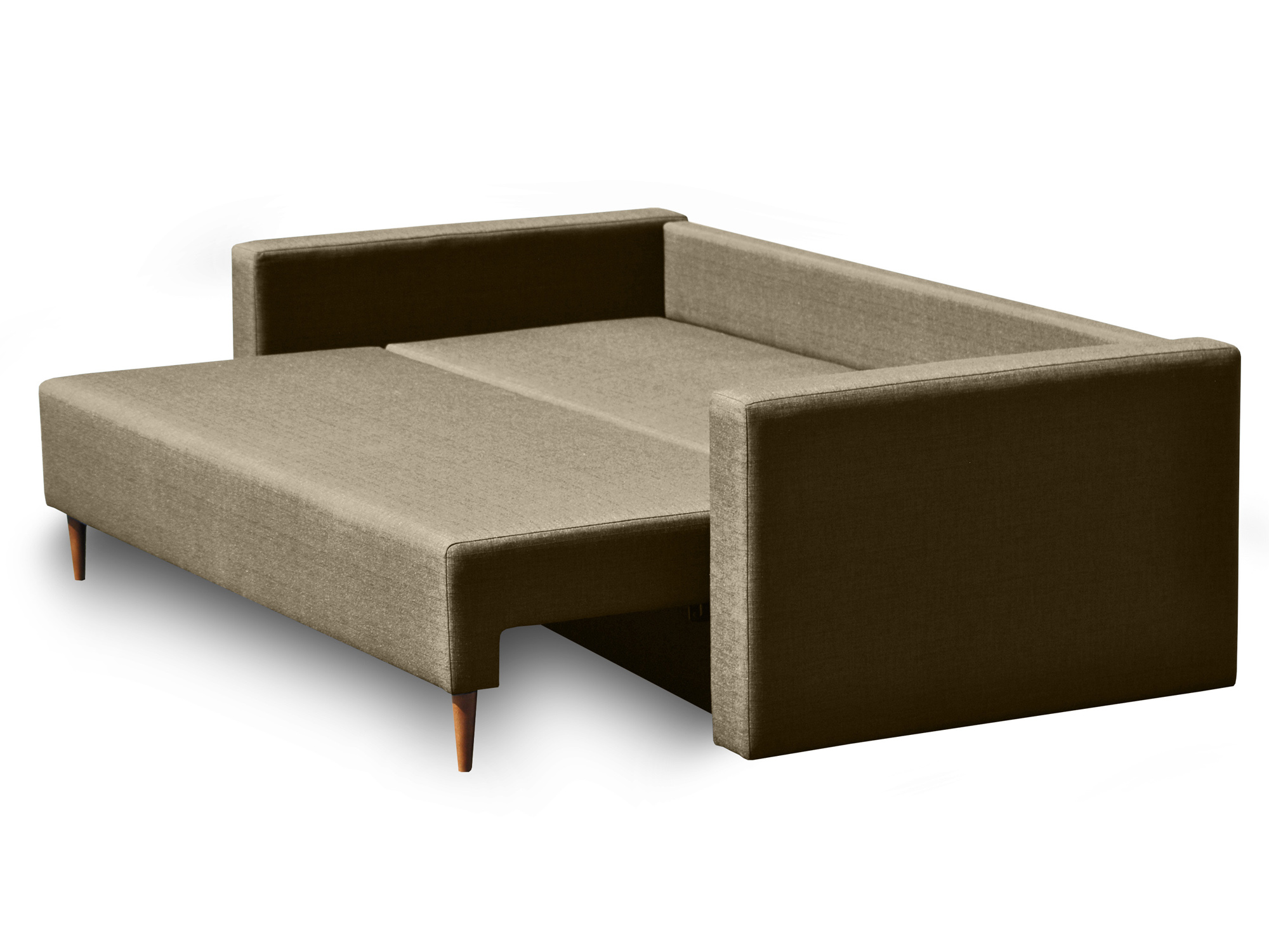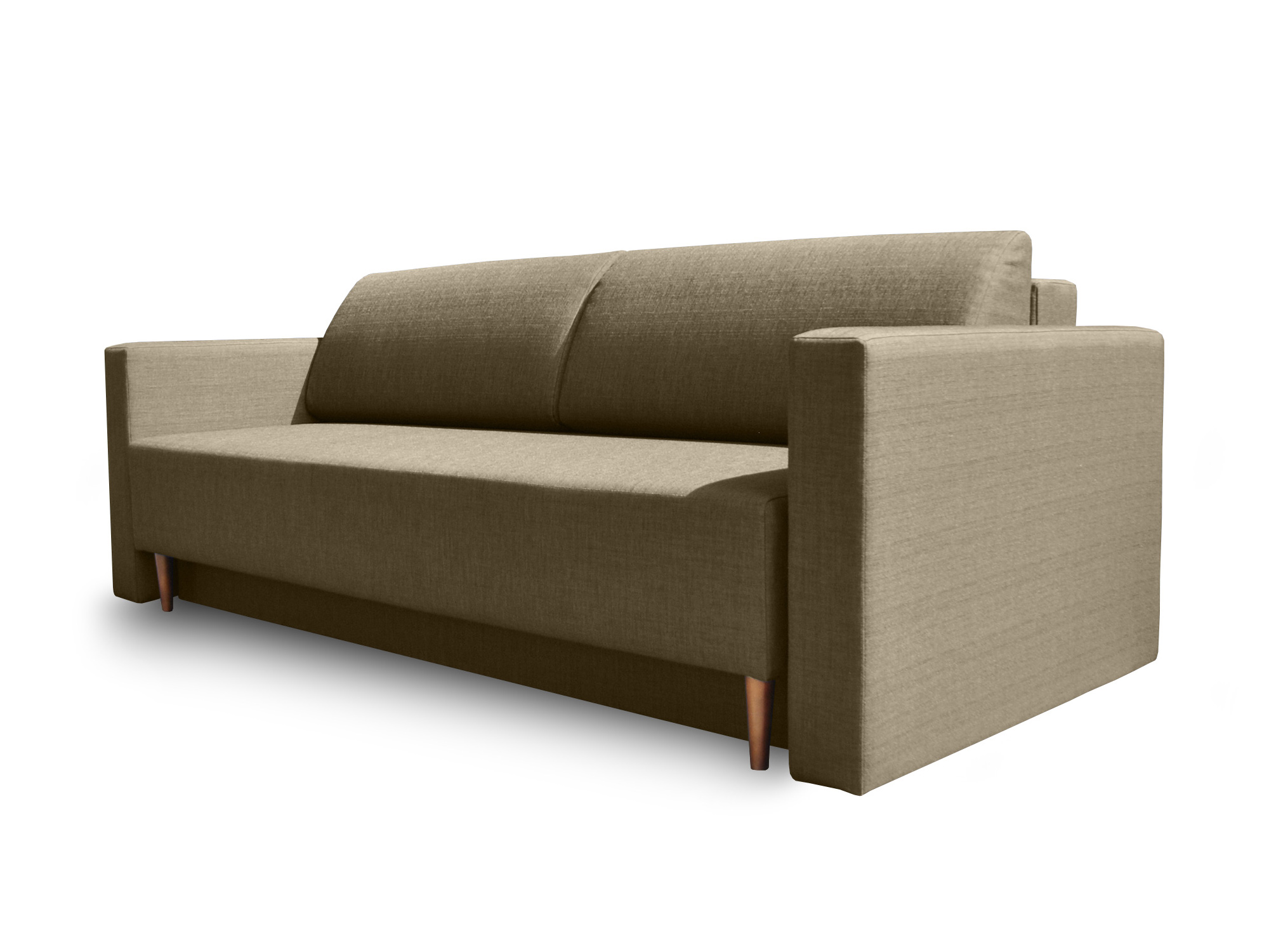 Dublin Mid-Century Modern Sofa Bed in Almond is a minimalist take on the modern couch. Providing a comfortable surface for you to lounge or sleep, it maintains a sleek mid-century modern design. Dublin also accommodates a practical storage space under the seating to keep pillows and other clutter. The high functionality of this furniture piece is obvious when you convert the sofa into a bed in a few seconds. The bed mechanism allows constant opening and closing due to its high reliability.