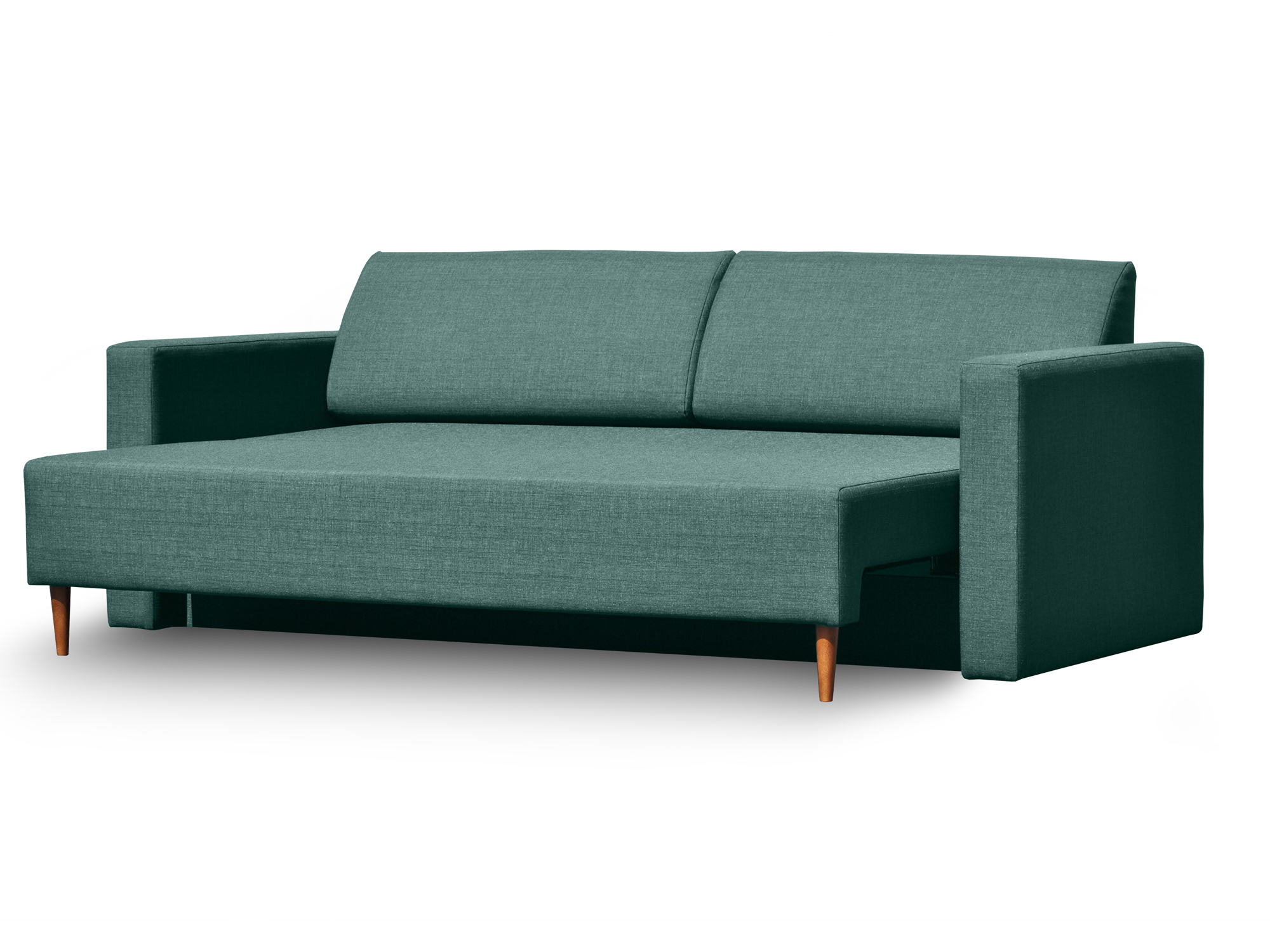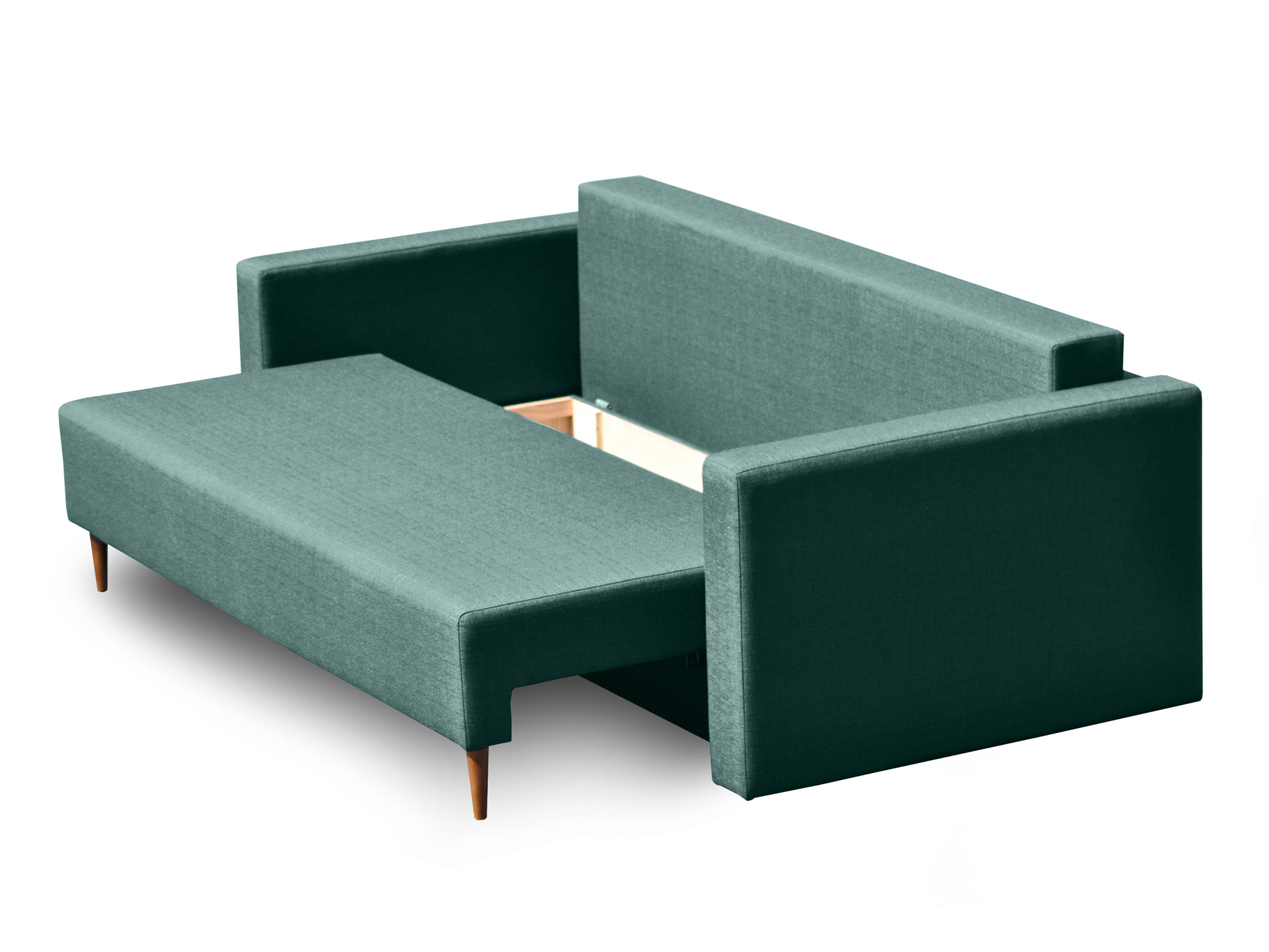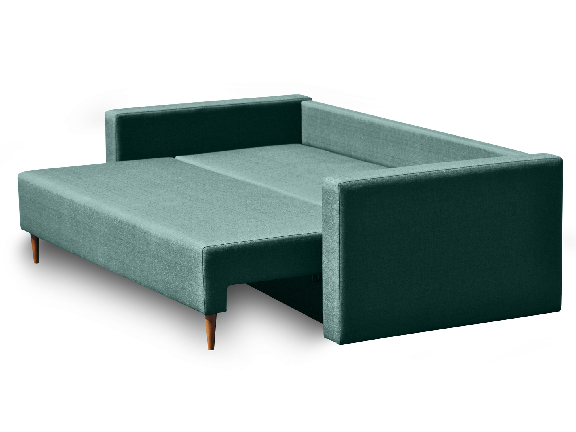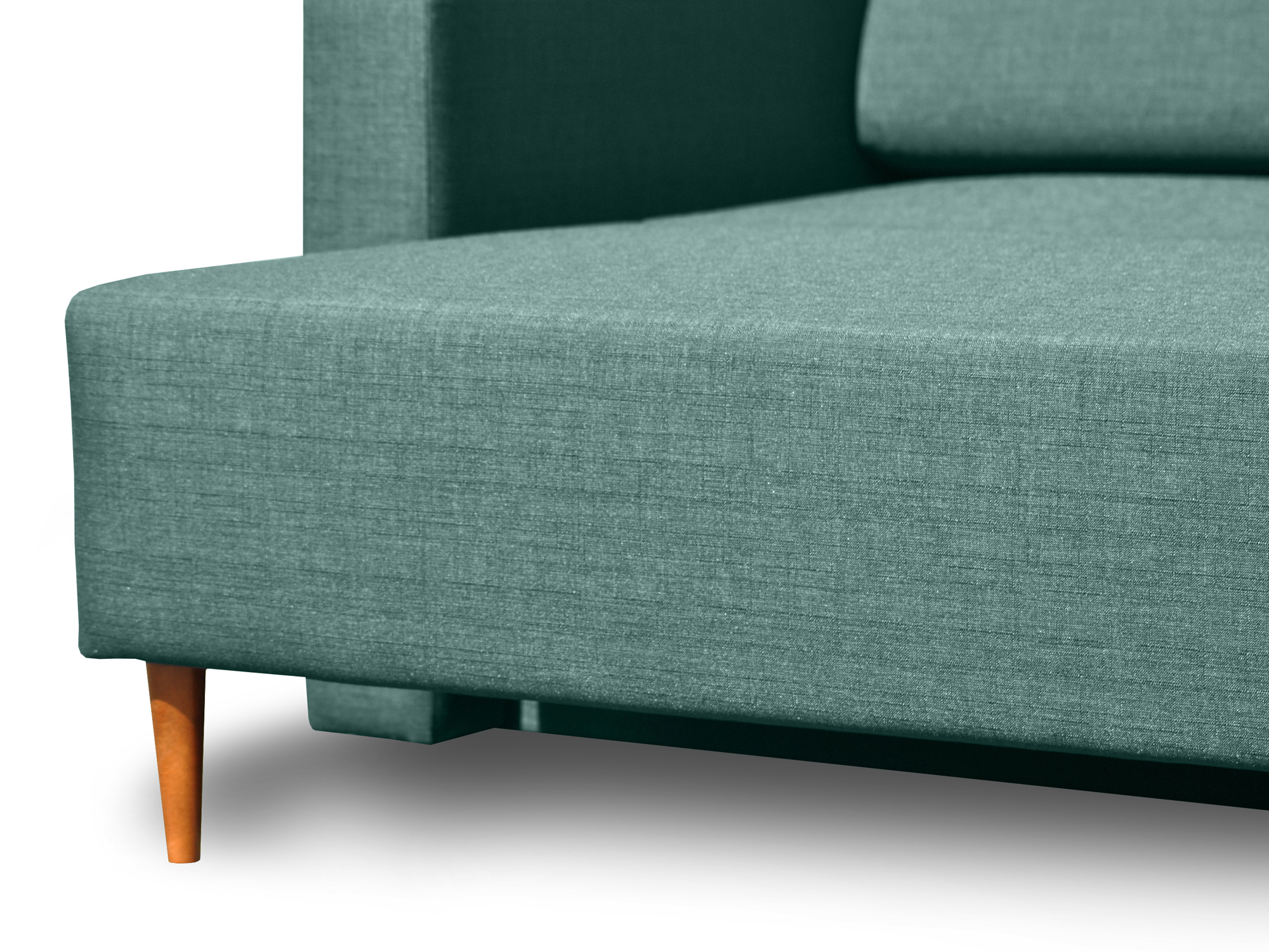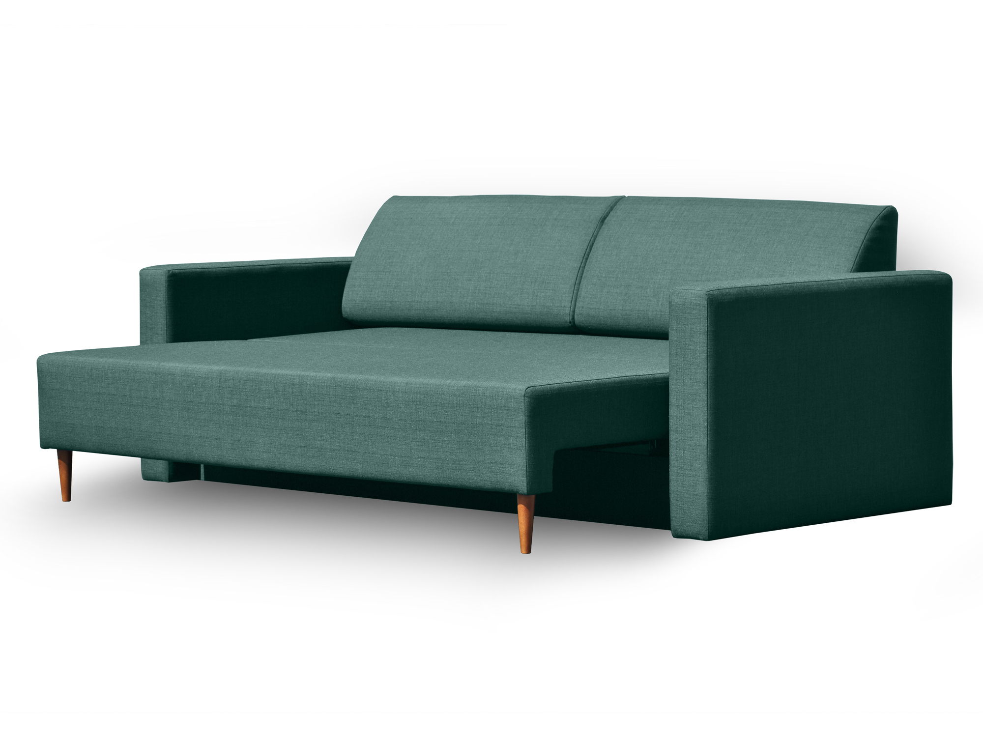 Dublin Mid-Century Modern Sofa Bed in Capri is a minimalist take on the modern couch. Providing a comfortable surface for you to lounge or sleep, it maintains a sleek mid-century modern design. Dublin also accommodates a practical storage space under the seating to keep pillows and other clutter. The high functionality of this furniture piece is obvious when you convert the sofa into a bed in a few seconds. The bed mechanism allows constant opening and closing due to its high reliability.