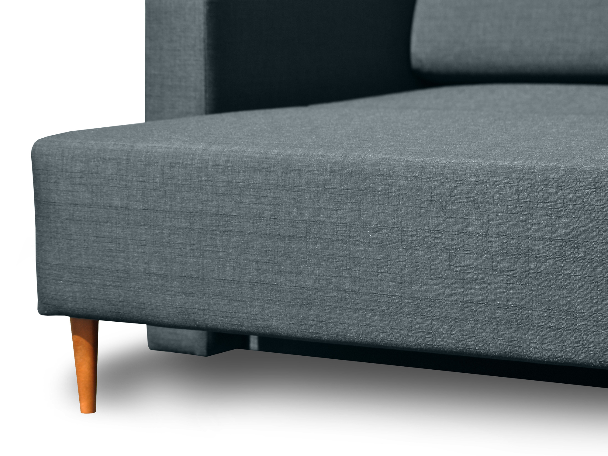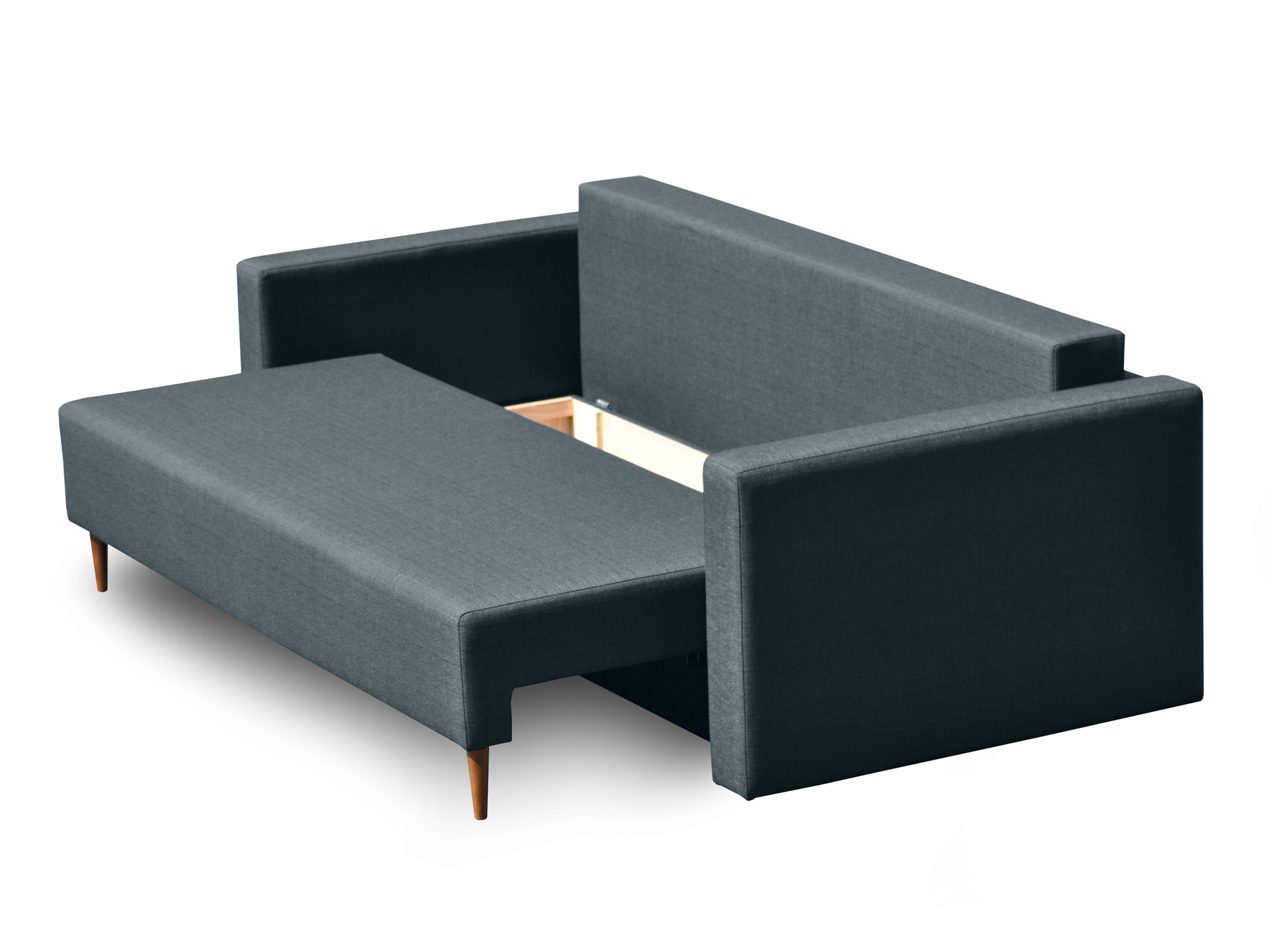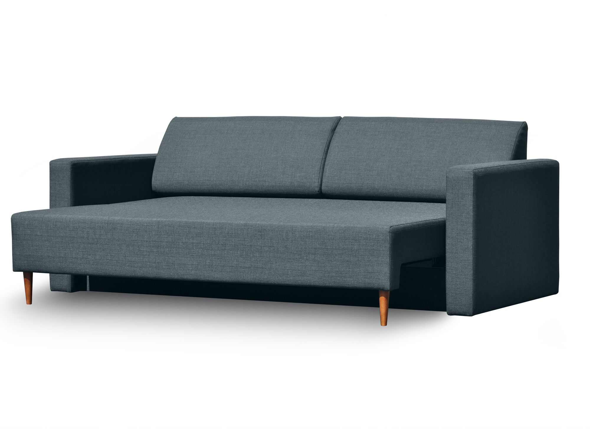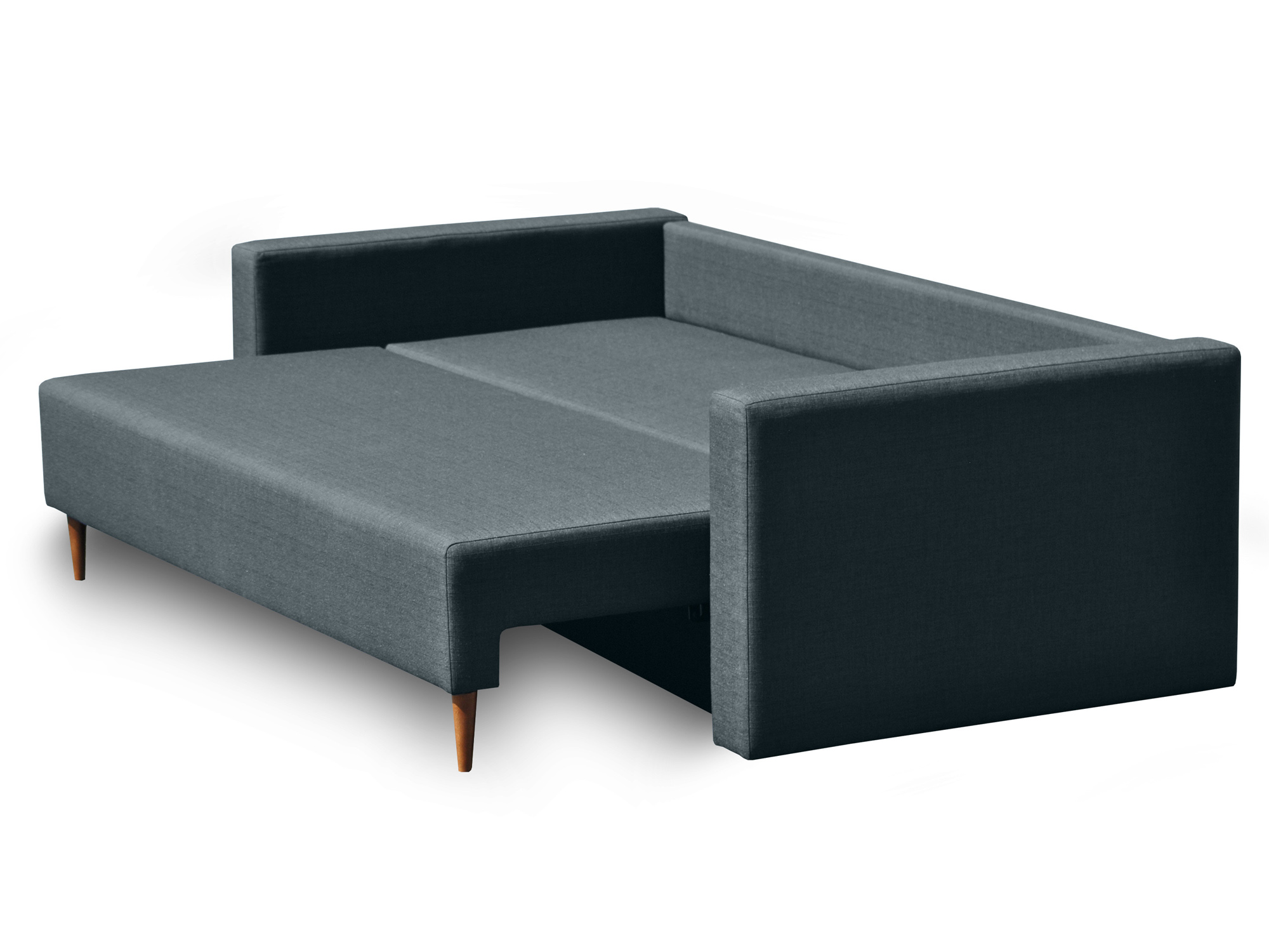Dublin Mid-Century Modern Sofa Bed in Denim is a minimalist take on the modern couch. Providing a comfortable surface for you to lounge or sleep, it maintains a sleek mid-century modern design. Dublin also accommodates a practical storage space under the seating to keep pillows and other clutter. The high functionality of this furniture piece is obvious when you convert the sofa into a bed in a few seconds. The bed mechanism allows constant opening and closing due to its high reliability.