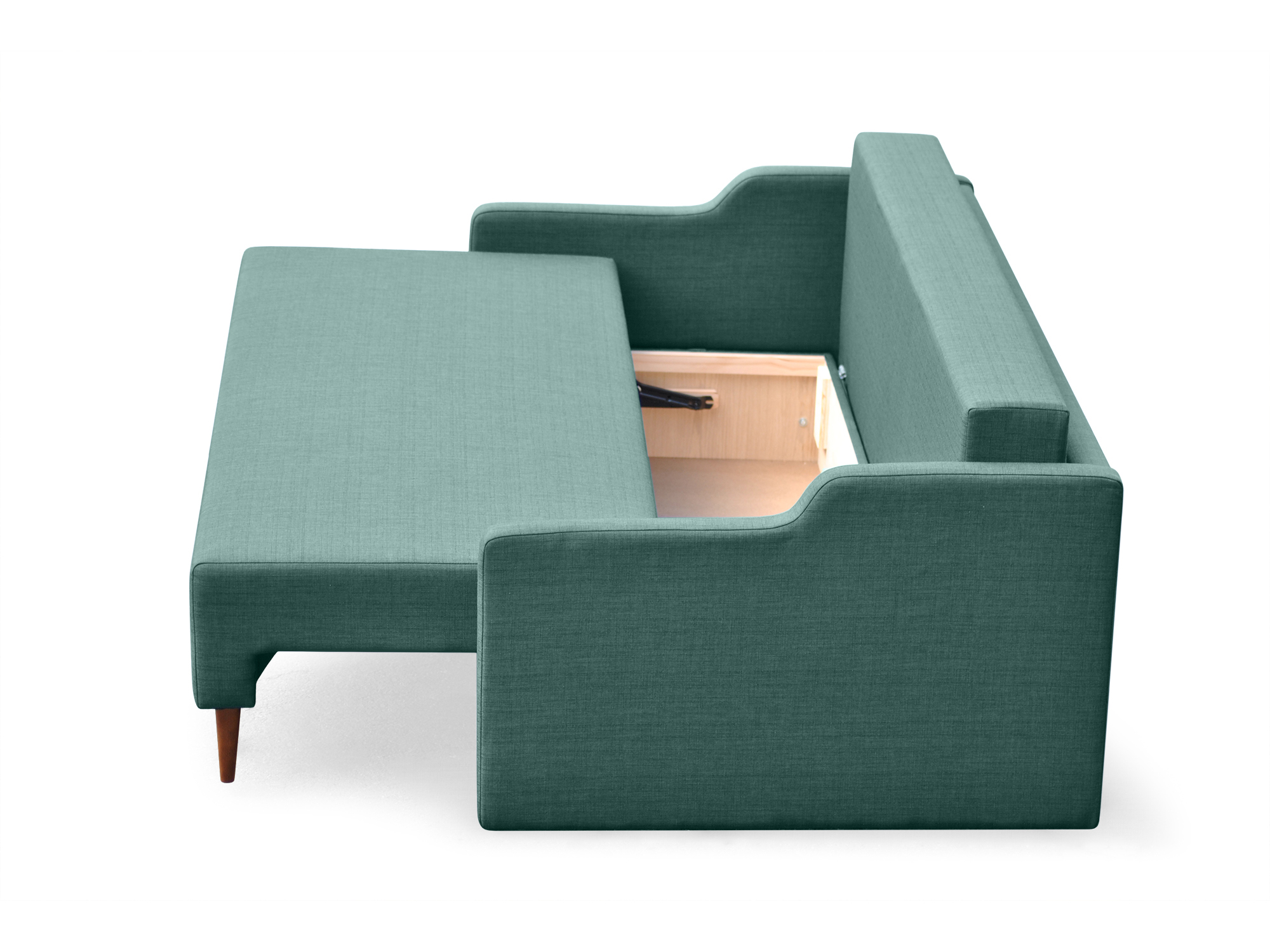 Featuring bright fabric upholstery, Oslo Sofa Bed in Capri will suit any living room set-up. A functional mid-century modern design offers a comfortable place to lounge and relax by day and a cozy surface to sleep at night. It utilizes a reliable mechanism that allows the user a simple operation of transforming the couch. A storage space under the seating is a great place for coverlets, pillows and blankets. Minimalist yet refined look of this sleeper is adorned with a mid-century flair, which complement any room interior.