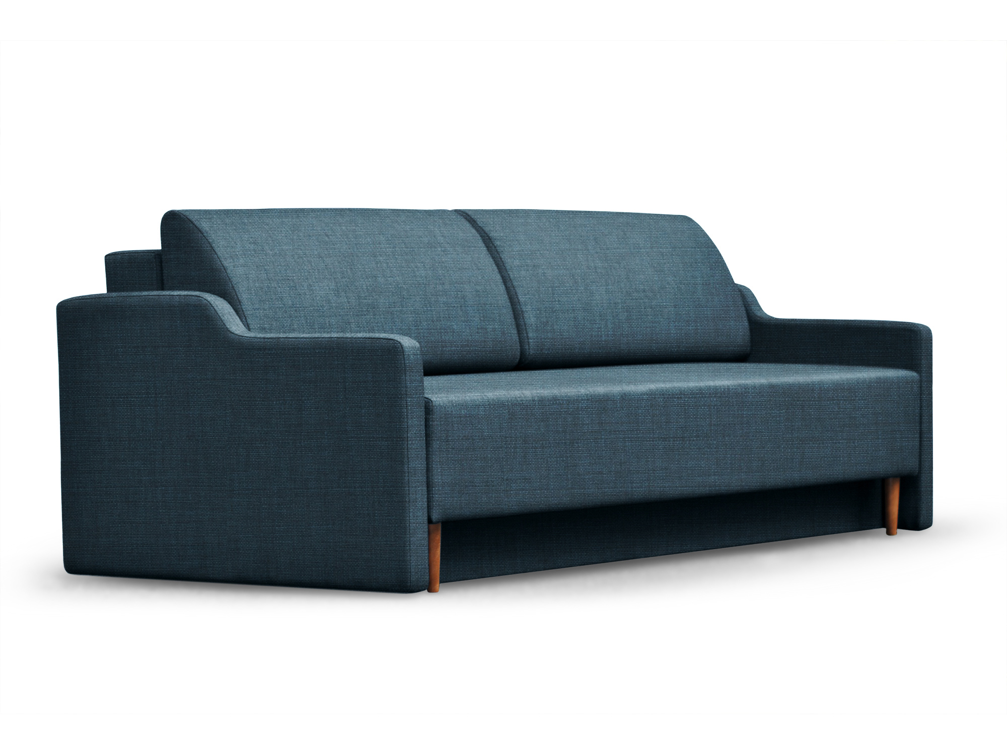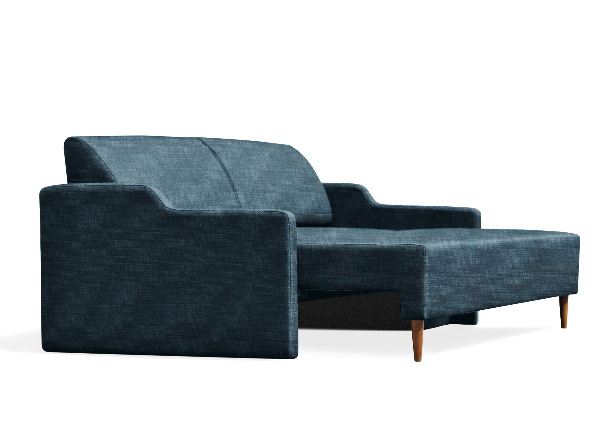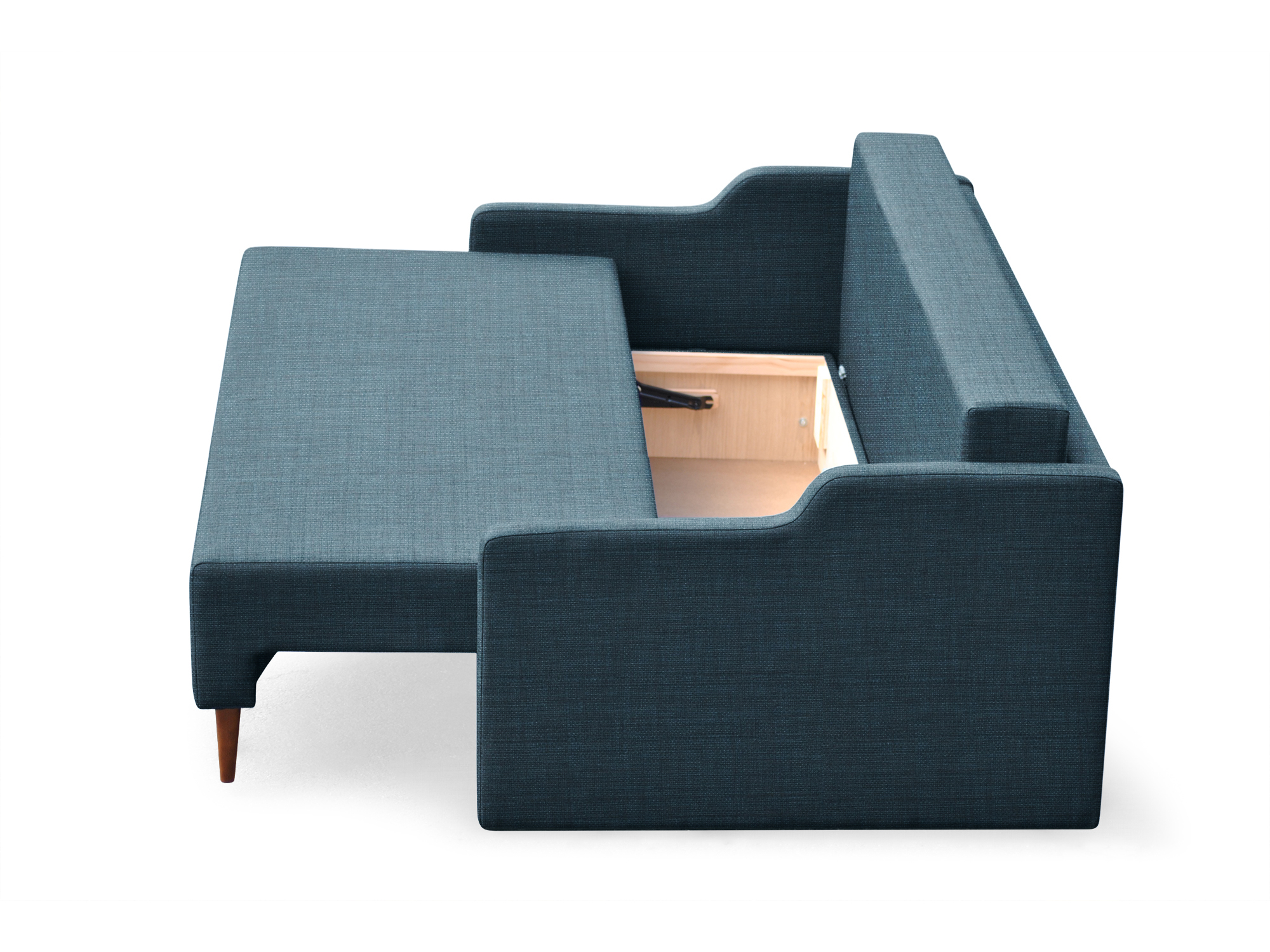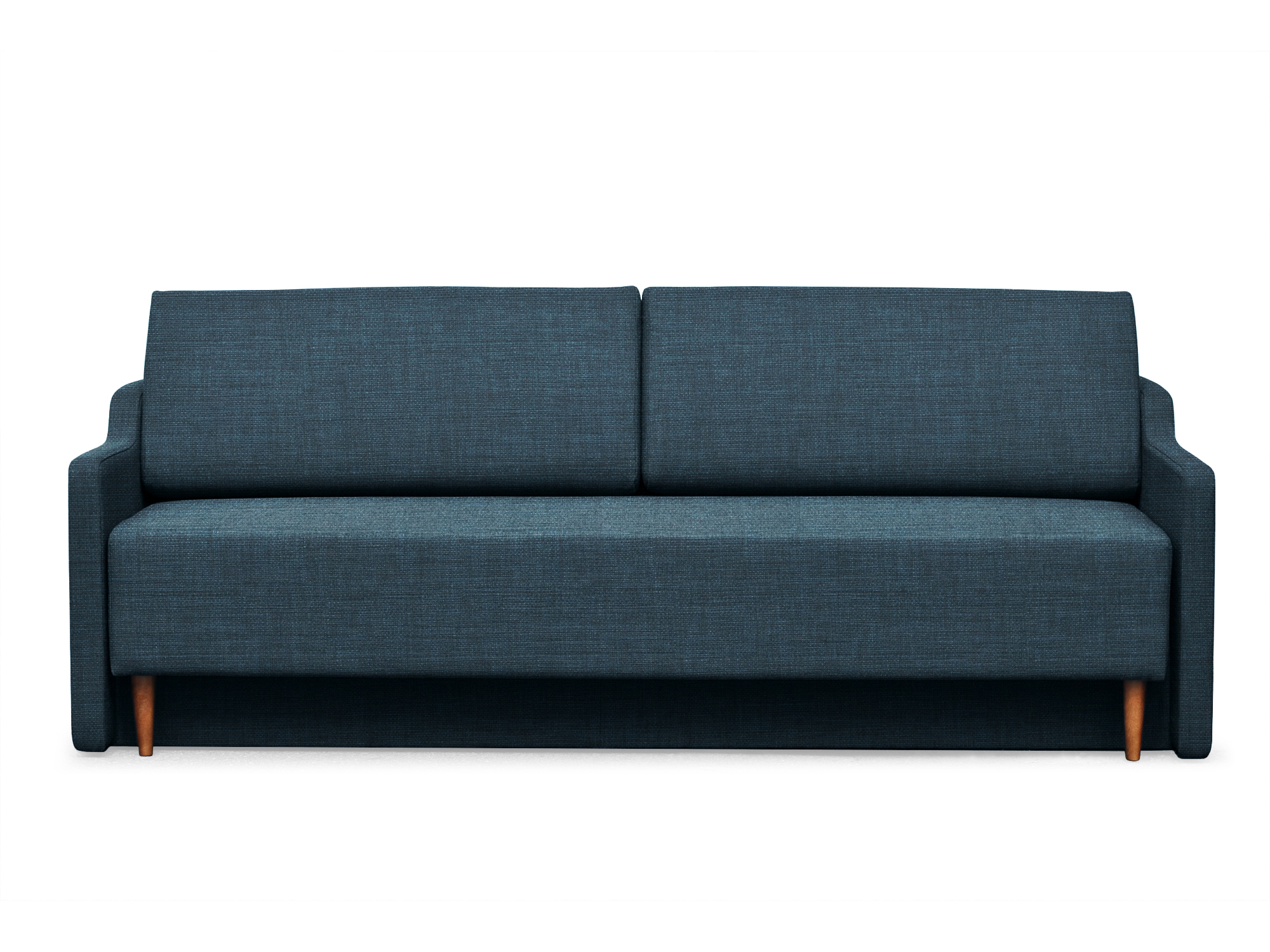 Able to suit any living room set-up Oslo Fofa Bed in Indigo features bright fabric upholstery. It utilizes a reliable mechanism that allows the user a simple operation of transforming the couch. A storage space under the seating is a great place for coverlets, pillows and blankets. A functional design offers a comfortable place to lounge and relax by day and a cozy surface to sleep at night. Minimalist yet refined look of this sleeper is adorned with a mid-century flair, which complement any room interior.